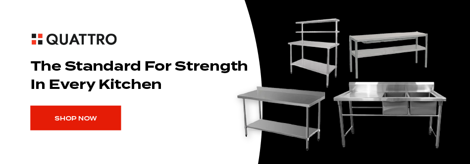 Backed by a team with hands-on kitchen experience, we understand the demands of a fast-paced kitchen. Our furniture is carefully selected to meet the highest standards of durability, hygiene and efficiency, helping you create a workspace that’s safe, practical and built to last. From robust stainless steel prep tables and storage solutions to heavy-duty sinks, shelving and trolleys, every piece is designed to support the smooth running of your kitchen.